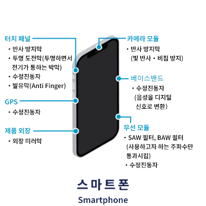 광학필터의 노시프트막부터 수지기판에의 밀착성 개선까지 다양한 용도에 활용되고 있습니다.