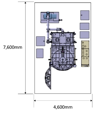 기존 Sapio1700에서 「배기 공정 단축」, 「성막 공정 단축」, 「벤트 공정 단축」, 「장치의 안정가동」, 이 네 가지를 실현했습니다. 제어계에서는 무선 모니터를 채용하여 고정밀 프로세스 제어가 가능합니다. 설치 면적은 기존 Sapio1700과 동일하며, 생산량은 2배인 양산 장비입니다.