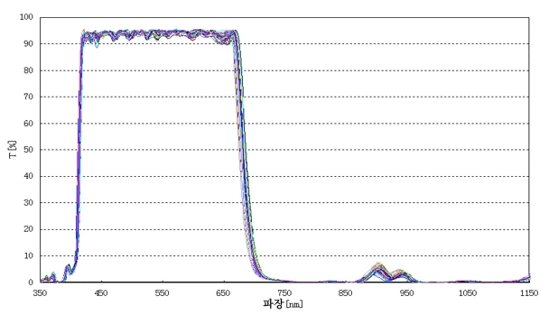 또한 진공 품질을 안정화시키는 기술과 오염의 영향을 받기 힘들게하는 기술을 도입함으로써, IR 컷 필터를 20배치 청소 및 보정 없이도 아래와 같은 특성을 실현했습니다.