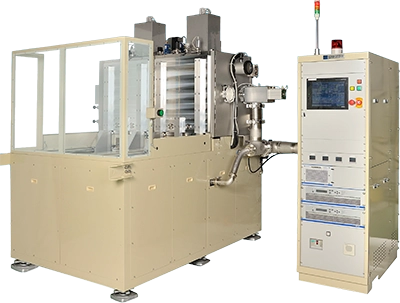 사출성형기와 본 장치를 연동하여 성형 → 금속막(Al) → 보호막(SiOx)을 간단히 전자동으로 성막합니다. 사출성형기와 동일 수준의 사이클타임을 구현함으로써 성형에서 성막까지의 공정을 원활하게 진행할 수 있습니다.