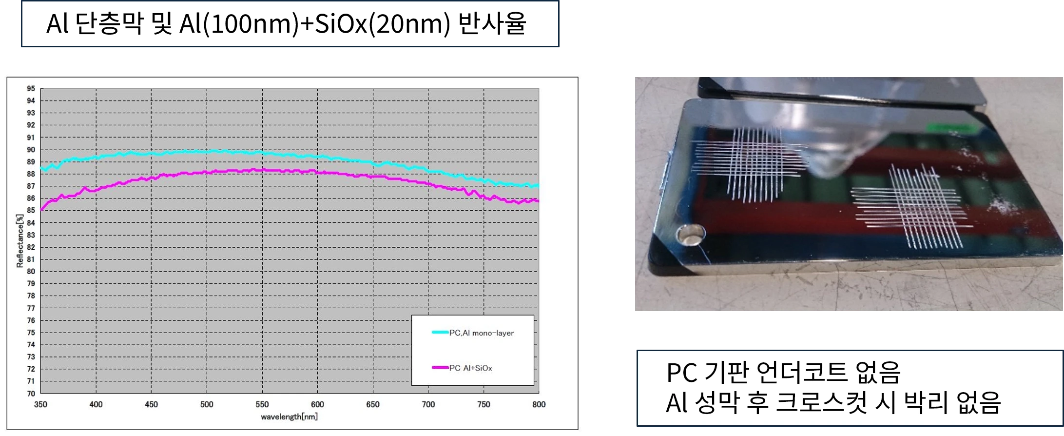 - 2. 사이클타임: 약 2분 (Al: 100nm + SiOx: 20nm)