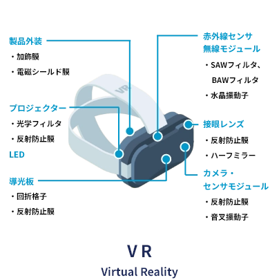 光学フィルタのノンシフト膜から樹脂基板への密着性改善まで様々な用途で活用されています。